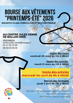 Bourse aux vêtements - Mercredi 1er avril à Ballan-Miré