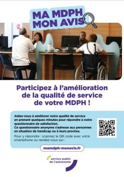 L’enquête en ligne https://mamdph-monavis.fr permet aux personnes en situation de handicap et à leurs proches aidants de donner leur avis sur la qualité de service de la MDPH 37.