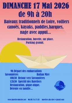 L'Association des Bateliers du Cher a le plaisir de vous inviter à une journée festivo-fluvialo-sportive, qui se tiendra sur les bords du Cher à Savonnières, le dimanche 17 mai 2026.