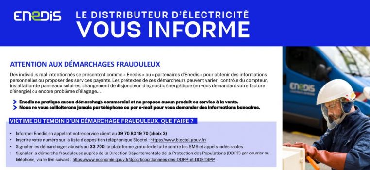 Depuis plusieurs jours, Enedis reçoit des signalements de clients faisant état d'une nouvelle vague d'opérations de démarchage illégales entreprises notamment depuis des plates-formes téléphoniques. Les auteurs de ces pratiques se font passer pour des partenaires d'Enedis ou pour Enedis, et ce, dans le but de proposer des offres commerciales ou d'obtenir des informations personnelles. Enedis condamne avec la plus grande fermeté ces agissements graves et répréhensibles et souligne que ces faits sont de nature à être sanctionnés pénalement.