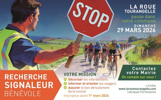 Dans le cadre de l'organisation de la 24ème édition de la Roue Tourangelle, qui aura lieu le dimanche 29 mars, nous recherchons des signaleurs bénévoles.